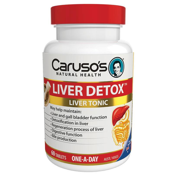 Một số trong nhiều vai trò mà gan của bạn thực hiện là làm sạch cơ thể các độc tố trao đổi chất và loại bỏ các chất thải không mong muốn thông qua ruột. Giải độc gan của Caruso đã được xây dựng để giúp hỗ trợ quá trình làm sạch và giải độc tự nhiên của gan và các cơ quan khác của quá trình đào thải. Nó có thể giúp hỗ trợ sản xuất mật và dòng chảy từ túi mật và hỗ trợ sức khỏe và chức năng tiêu hóa tổng thể, giảm một số triệu chứng khó chịu liên quan đến chứng khó tiêu. Chỉ dẫn sức khỏe giải độc gan của Caruso: • Duy trì chức năng gan khỏe mạnh • Hỗ trợ quá trình giải độc • Thúc đẩy chức năng hệ tiêu hóa khỏe mạnh • Hỗ trợ sản xuất mật • Giảm các triệu chứng khó tiêu, đầy hơi và co thắt tiêu hóa