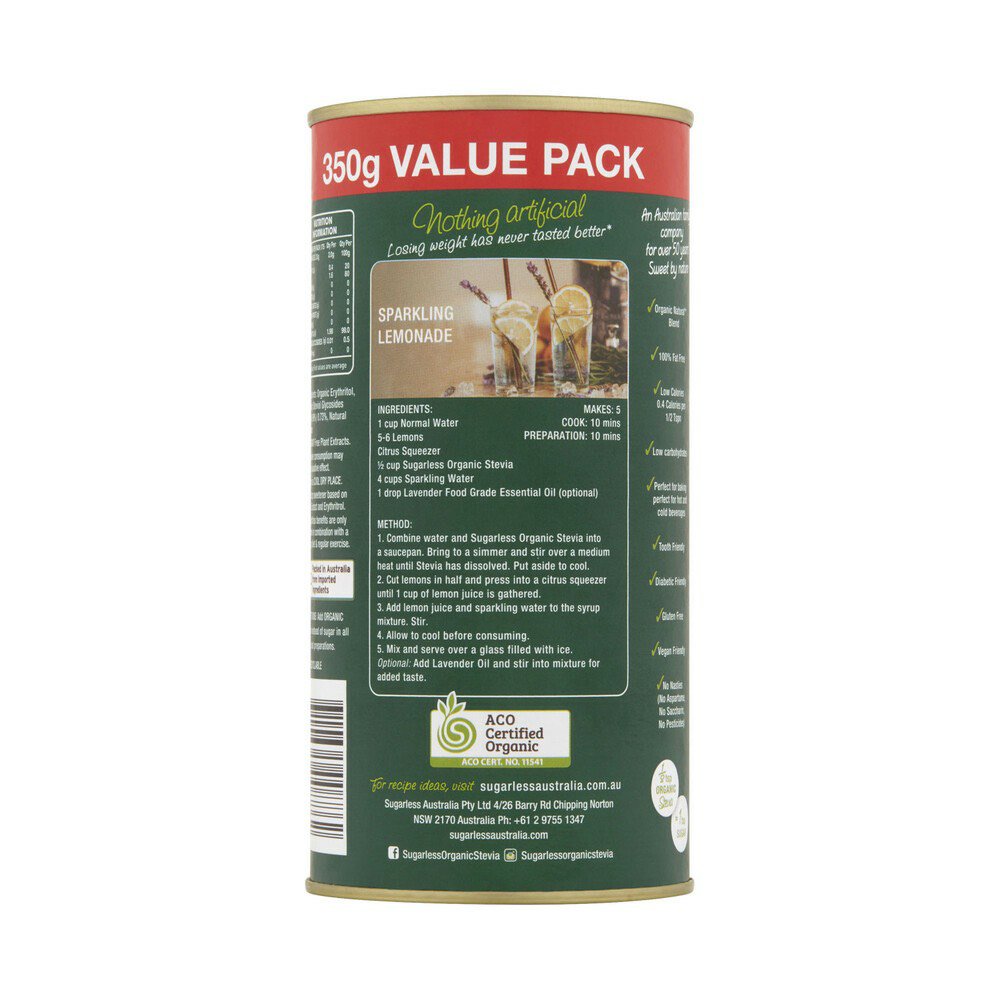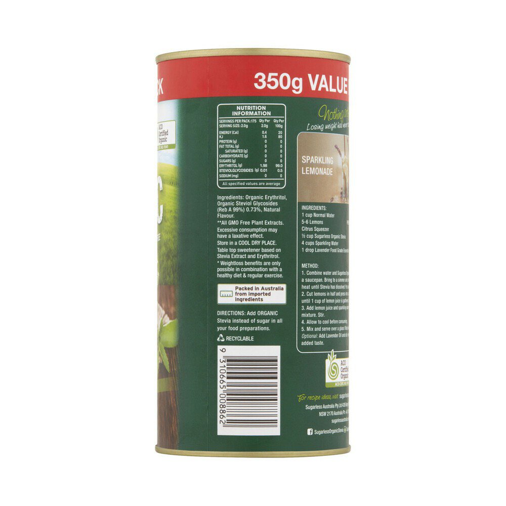 Thành phần đường cỏ ngọt ăn kiêng hữu cơ Úc Earthia Stevia 100% Organic Sweetener 350g: