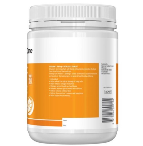 Hướng dẫn sử dụng Viên nhai Vitamin C Healthy Care 500mg của Úc 500 viên: