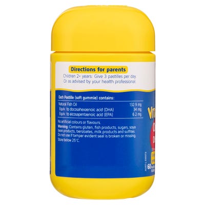 Thành phần kẹo dẻo bổ sung Omega 3 & DHA cho bé Nature’s Way Kids Smart Vita Gummies Omega-3 DHA Fish Oil của Úc 60 viên