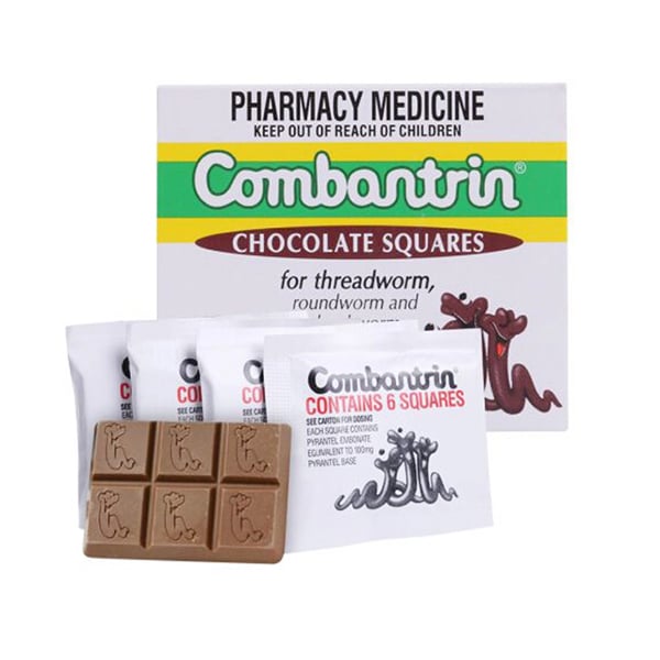 Kẹo tẩy giun Combantrin chocolate Squares là sản phẩm tẩy giun bán chạy nhất tại Úc được thiết kế dưới dạng kẹo socola mùi vị rất dễ ăn giúp hỗ trợ tẩy các loại giun như giun kim, giun tròn hay giun móc cứng đầu chỉ trong một liều duy nhất.