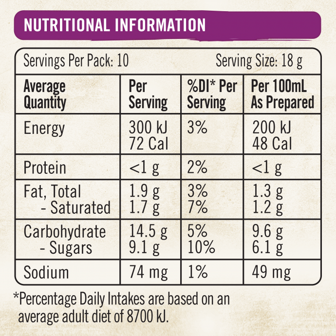 Các đại lượng nêu trên chỉ là giá trị trung bình. Thông tin dinh dưỡng khác có thể đư