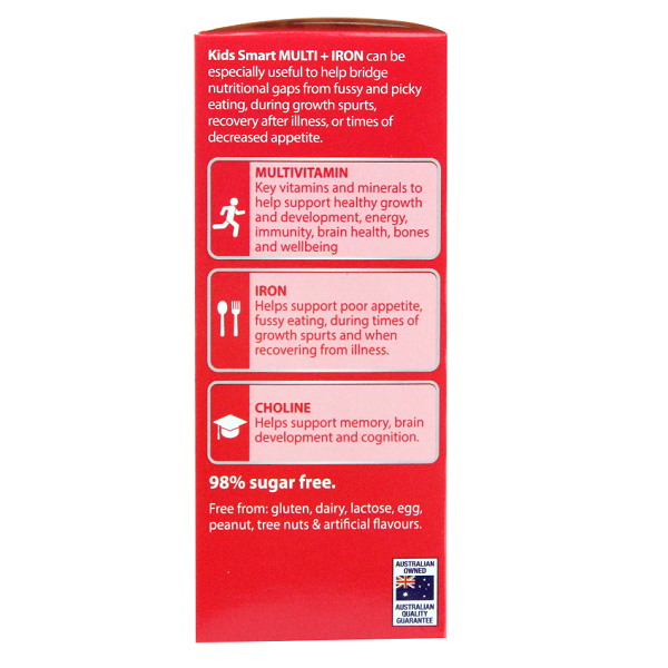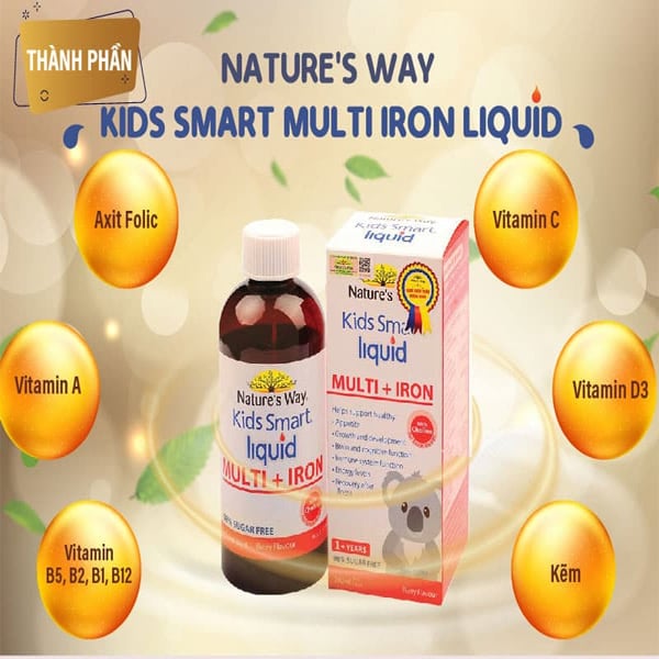 Nature’s Way Kids Smart Liquid Multi + Iron của Úc giúp bổ sung sắt và các vi khoáng chất tổng hợp cho bé, hỗ trợ tăng cường sức khỏe, nâng cao sức đề kháng của trẻ, bé phát triển và tăng trưởng khỏe mạnh.