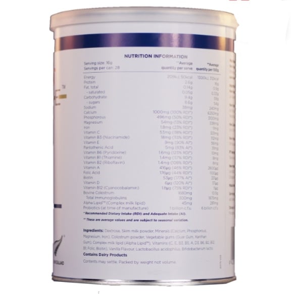 Thành phần sữa non hỗ trợ tăng cường sức khỏe Lifeline Alpha Lipid của Úc 450g: