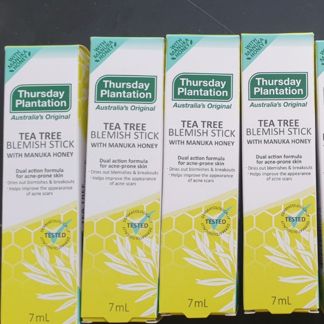 Thursday Plantation Tea Tree Blemish Stick With Manuka Honey là sản phẩm gel chấm mụn với công thức tác động kép kết hợp tinh chất dầu cây tràm trà 100% nguyên chất trồng ở Úc và mật ong Manuka , đặc biệt thích hợp cho da dầu, đang bị mụn trứng cá.