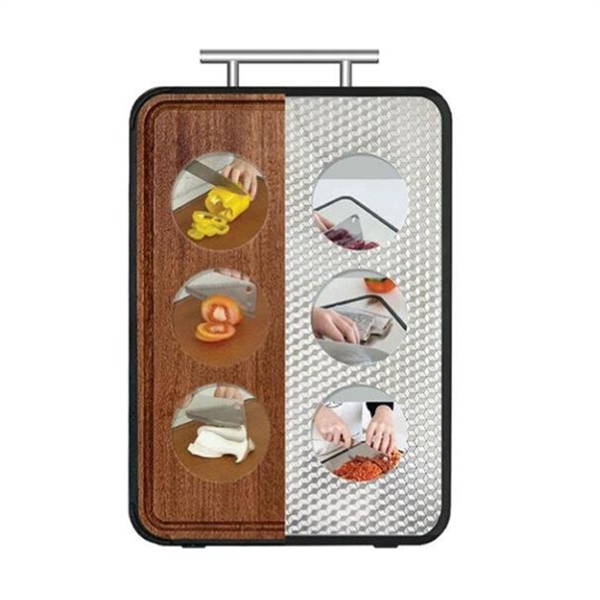 -Bạn có thể sử dụng mặt gỗ để cắt và chế biến thực phẩm mà không làm tổn thương lưỡi dao, trong khi mặt thép không gỉ 304 được sử dụng để chế biến thực phẩm sống hoặc dùng làm bề mặt làm việc để trình bày thực phẩm.