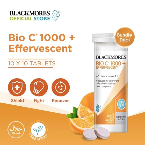 Viên sủi hỗ trợ tăng đề kháng Blackmores Bio C 1000 + Effervescent của Úc lọ 10 viên
