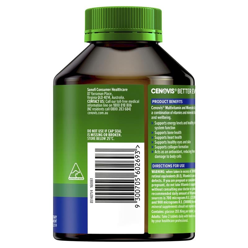 Viên uống bổ sung vitamin tổng hợp Cenovis Multivitamin & Minerals của Úc 200 viên có tốt không?