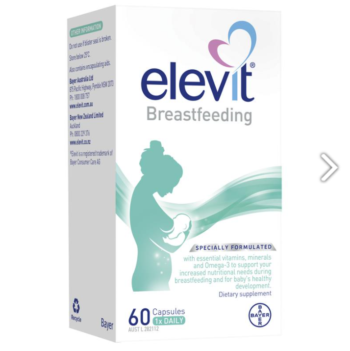 Elevit Breastfeeding – Elevit sau khi sinh và con bú đã được hãng Bayer Úc nghiên cứu và điều chế theo một công thức đặc biệt nhằm giúp cung cấp đầy đủ nhu cầu dinh dưỡng hàng ngày cho người mẹ đang trong thời kỳ cho con bú và đảm bảo sữa cho bé đầy đủ chất.