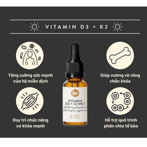 Vitamin hỗ trợ tăng chiều cao, chống còi xương cho bé Sunday Natural Vitamin D3 K2 MK7 200IE của Đức 20ml có tốt không?